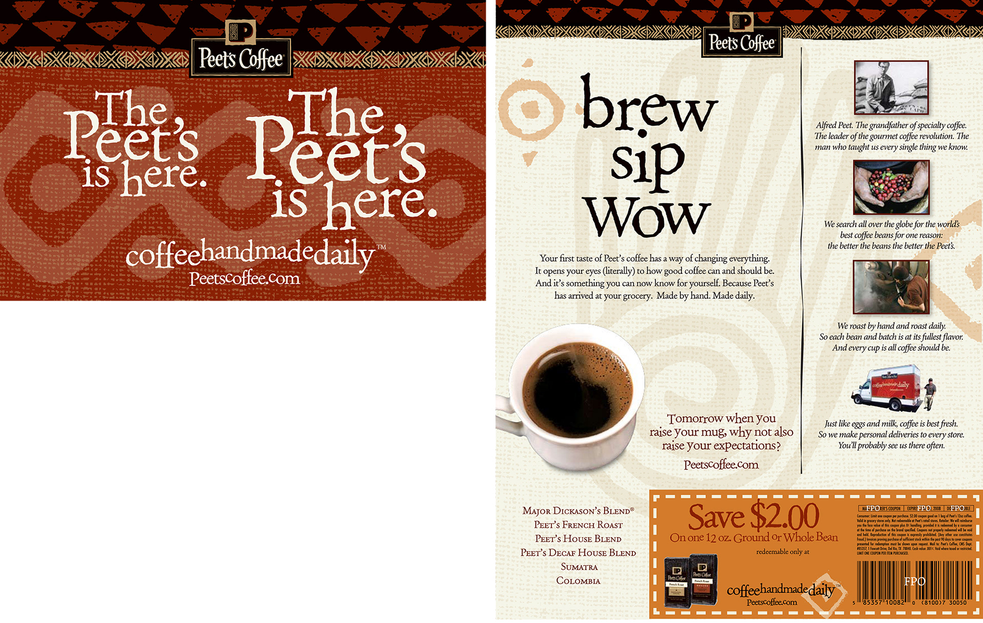 This project was created to introduce Peets to the East coast of the US. It included point of sale, emails, direct mail, web banners. And a truck.