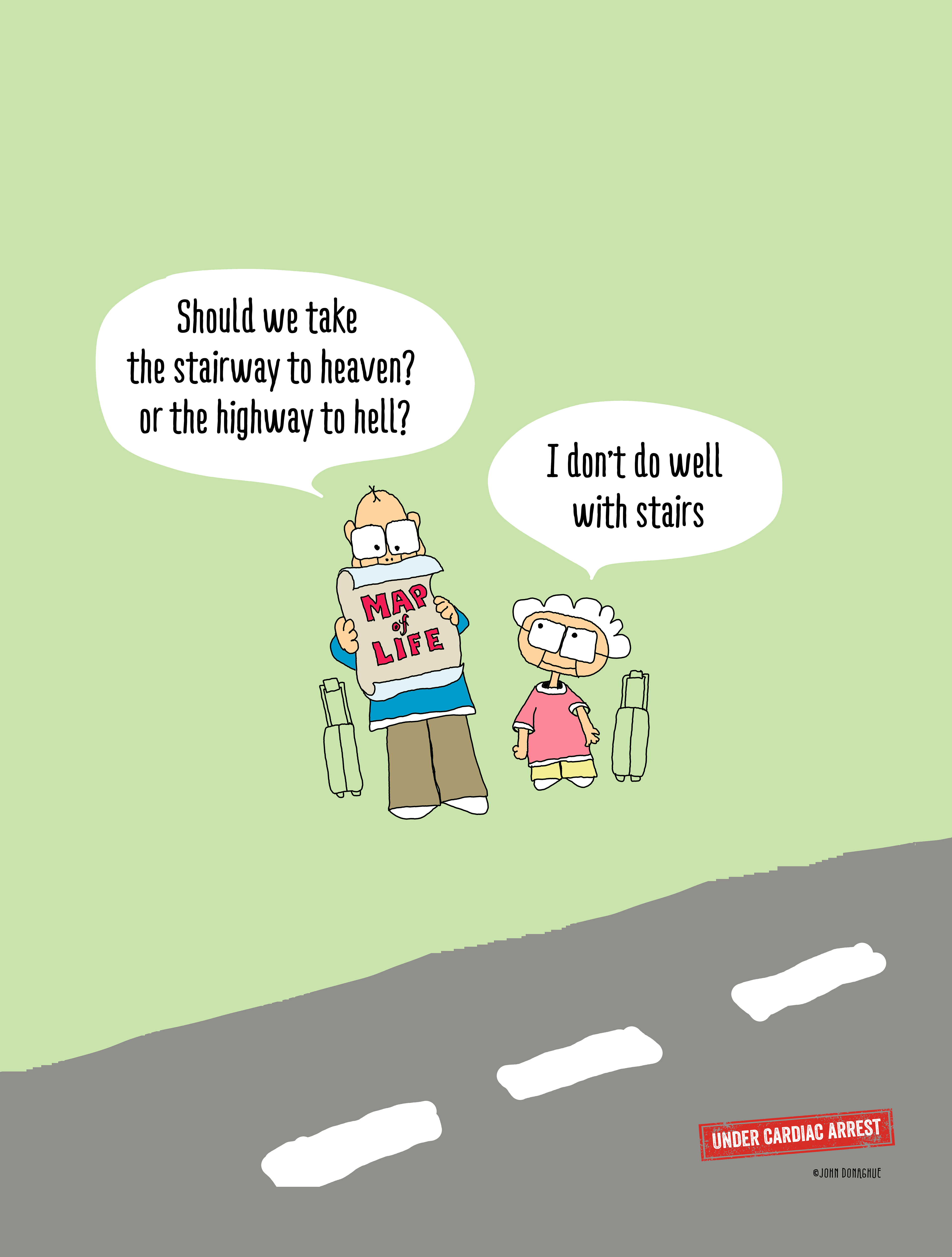 UnderCardiacArrest.com Under Cardiac Arrest is a comic series starring a quirky couple loosely based on my parents. Besides thousands of followers online it has been translated into greeting cards, shirts, mugs and a book`.
